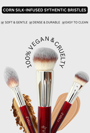 The Red Brush Set is created for beginners and everyday makeup lovers who want salon-like results at home. With stylish wooden handles and durable metal ferrules, these brushes feel luxurious yet easy to use. The soft synthetic bristles pick up and apply product smoothly, giving a natural, flawless finish without effort. Whether you’re doing a quick daily look or experimenting with new styles, this set is the perfect companion.